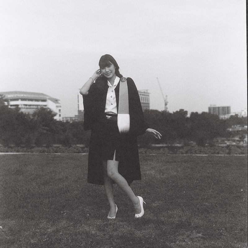 Foma 400 อาจไม่ใช่ฟิล์มขาวดำที่หรูหราที่สุด แต่เมื่ออยู่ในระบบ Hasselblad แล้ว มันกลับดึง texture ของผิว เสื้อครุย และสภาพแสงกลางแจ้งออกมาได้ชัดมาก